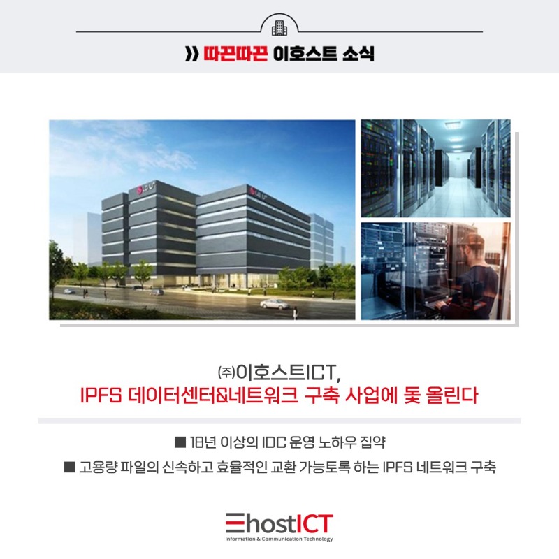 | 다음글 | ㈜이호스트ICT, IPFS 데이터센터&네트워크 구축 사업에 돛 올린다 |